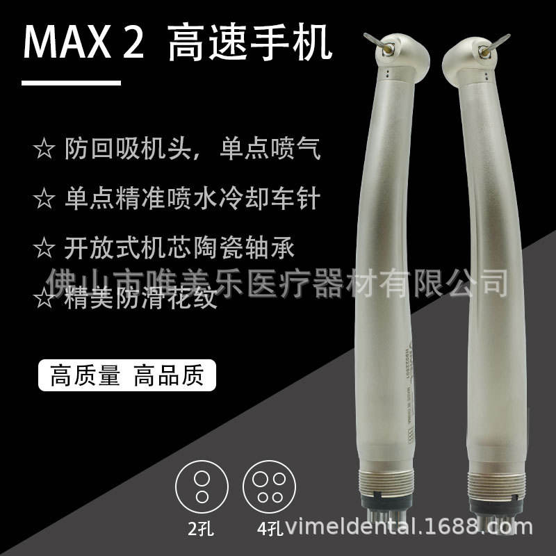 หัวกรอฟันความเร็วสูง MAX2 แบบจ่ายน้ำเดี่ยว แบบกด ลูกปืนป้องกันการไหลย้อน หัวกรอฟันมาตรฐาน แบบสี่รู