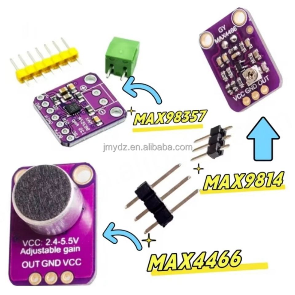 MAX98357แอมป์ไมโครโฟนอีเลคเตรต์ MAX4466 MAX9814, โมดูลเครื่องขยายเสียง MAX9814ที่เสถียรรองรับ ESP32ราสเบอรี่ Pi