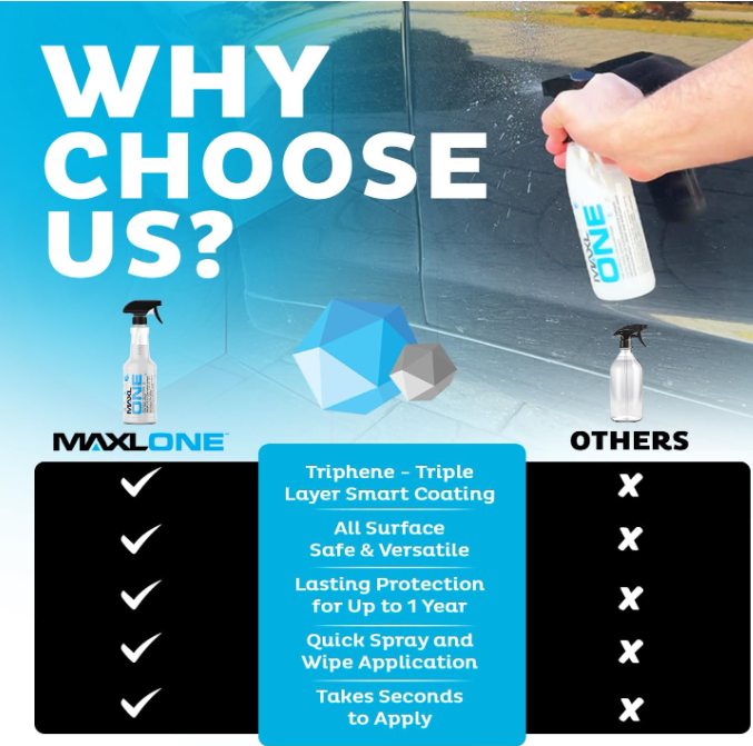 MAXLONE น้ำยาเคลือบเงารถยนต์ชนิดน้ำ 20 ออนซ์ ทริเฟน สเปรย์ทำความสะอาดและปกป้องสี/กระจก/ล้อ/ขอบประตู แบบไม่ใช้น้ำ หมดอายุ 3 ปี