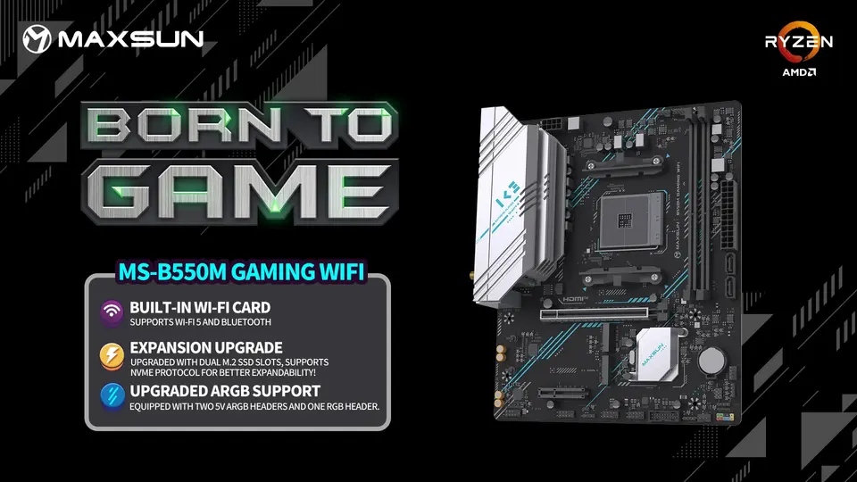 Maxsun เมนบอร์ดคอมพิวเตอร์ตั้งโต๊ะ B550M, มาเธอร์บอร์ดเกมพร้อมชิปเซ็ต Intel DDR4 Wi-Fi ความจุ64GB เข้ากันได้กับหน่วยความจำคู่ใหม่