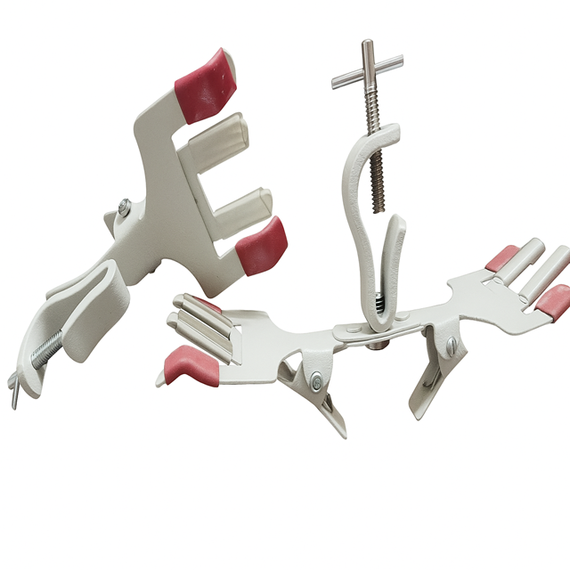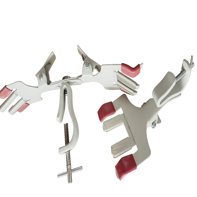ตัวหนีบบูเรตแบบปรับได้สองด้าน MAYALAB MBC85 ทำจากเหล็กแผ่นสีขาวขัดเงา สำหรับยึดบูเรตแก้วในงานทดลอง