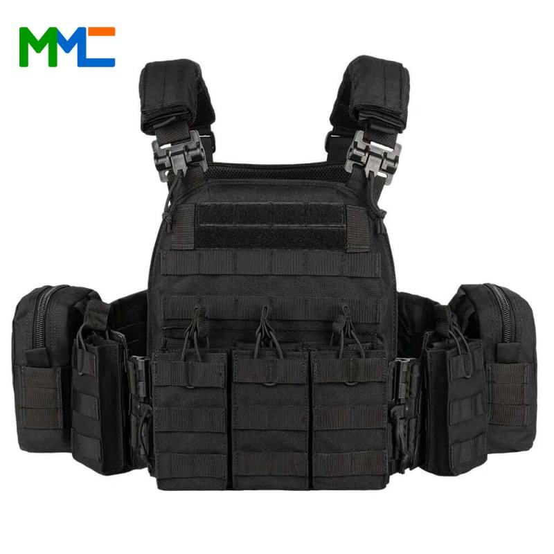 เสื้อกั๊กยุทธวิธี MC Tactical Gear พร้อมแผ่นน้ำหนักในตัว กระเป๋าเป้สะพายหลังแบบยุทธวิธี สีดำ ทำจากโพลีเอสเตอร์ สายรัดหน้าอก โลโก้สั่งทำได้ สำหรับกิจกรรมกลางแจ้ง