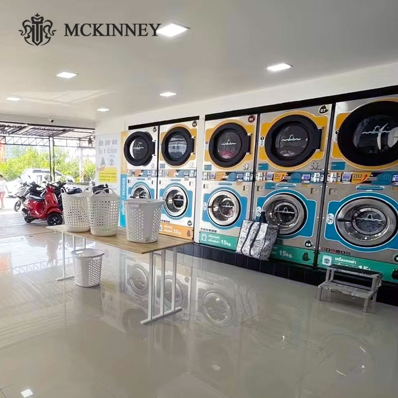 โครงการร้านซักรีดที่ประสบความสำเร็จของ MCKINNEY เครื่องซักผ้าและอบผ้าแบบซ้อนเชิงพาณิชย์ขนาด 12 กก. อุปกรณ์ซักรีด