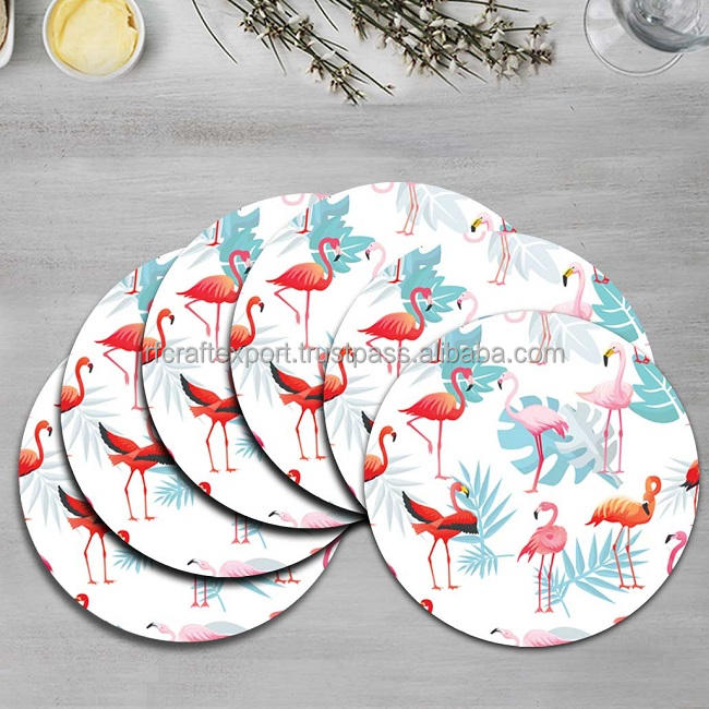 แผ่นรองจานไม้สำหรับรับประทานอาหารแผ่นรองจานทรงกลมทนความร้อนและน้ำดีไซน์พิมพ์ลาย