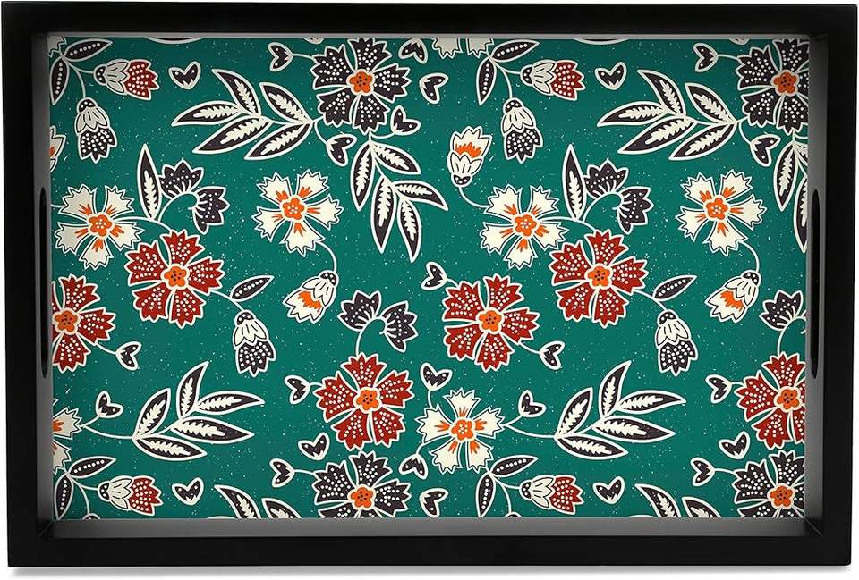 ถาดเสิร์ฟสี่เหลี่ยมขนาดใหญ่ทำด้วยมืออย่างมีเอกลักษณ์ของตกแต่งวาดด้วยมืออย่างยั่งยืน