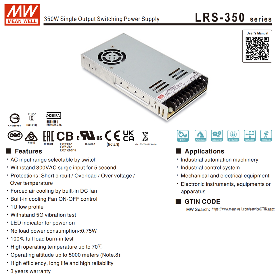 LRS-350-48 LRS-350-36 LRS-350-24 LRS-350-12หมายเลขรุ่น