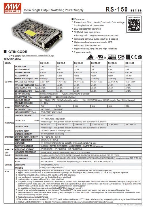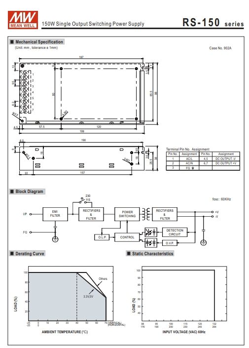 คุณสมบัติ:88 VAC to 132 VAC, 176 VAC to 264 VAC