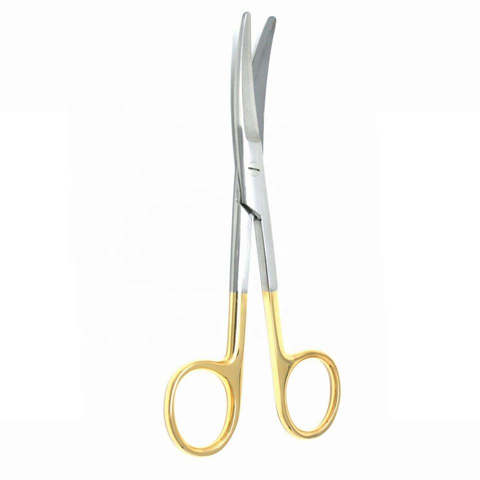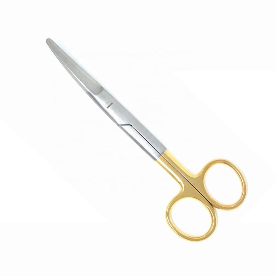 บริษัทผ่าตัด medheal กรรไกรผ่าตัด Mayo แบบผ่าครึ่งสีทองมีใบมีด TC แบบโค้งมนเครื่องมือผ่าตัด