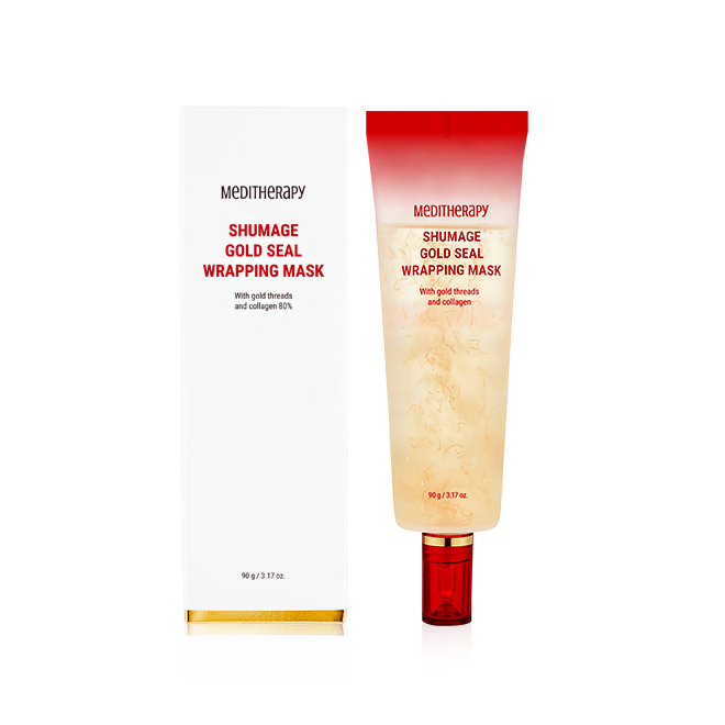 [MEDITHERAPY] ชูเมจ โกลด์ ซีล คริสตัล แรปปิ้ง มาส์ก ผสมไนอาซินาไมด์ สำหรับดูแลริ้วรอยบนใบหน้าและเติมความชุ่มชื้นอย่างล้ำลึก 50 ชิ้น/กล่อง