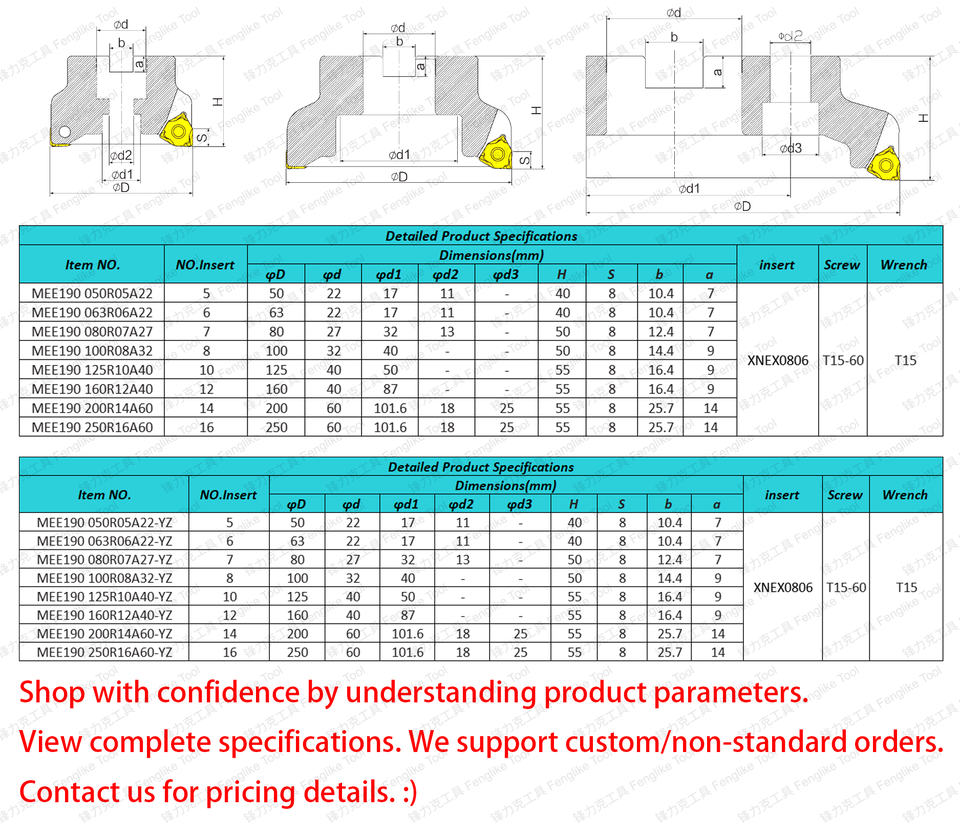 MEE190ตัวแทรกแบบ XNEX080608สองด้าน90 ° สำหรับเหล็กหล่อ/เหล็กกล้าความเร็วสูง