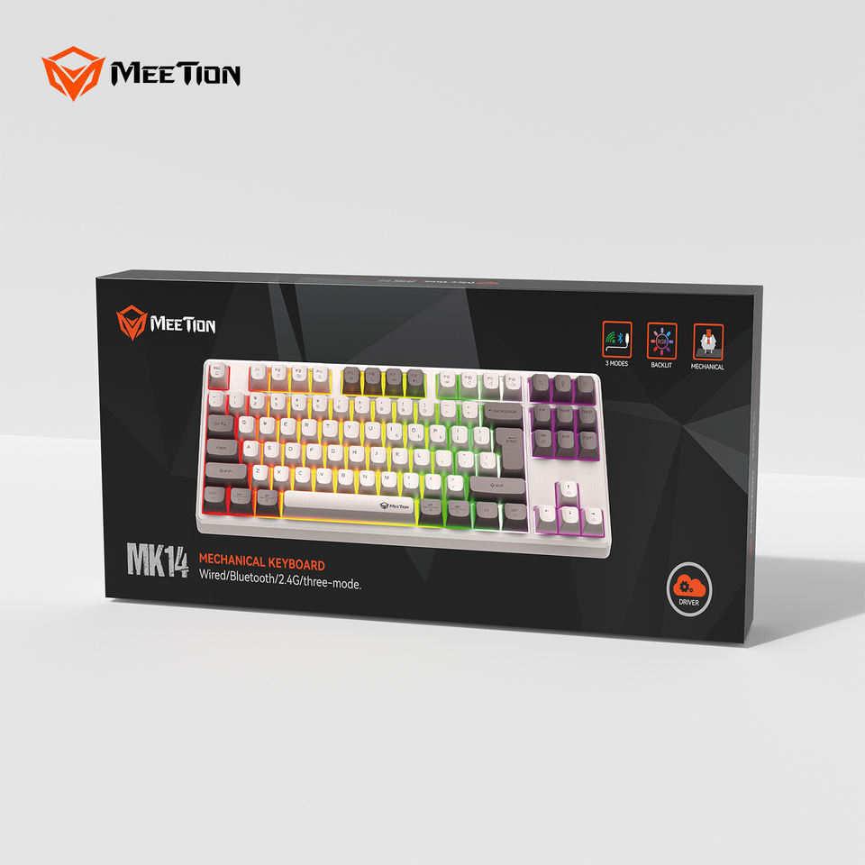 Meetion คีย์บอร์ด MK14 tkl สามโหมดแบบแลกได้, คีย์บอร์ดกลไกแสง RGB 87ปุ่มสำหรับเล่นเกม