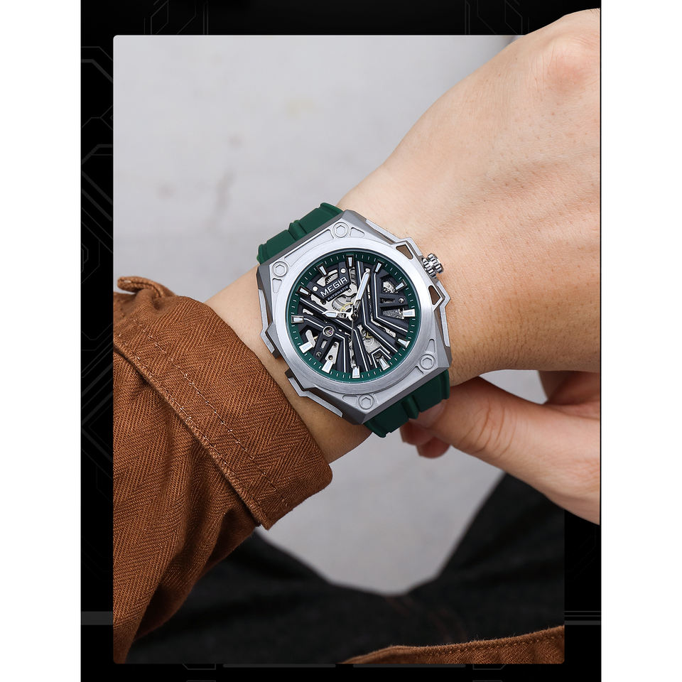 MEGIR 8603นาฬิกาข้อมือกลไกจักรกลสเตนเลสสตีลอัตโนมัติสำหรับผู้ชายนาฬิกาข้อมือเรืองแสงกันน้ำเส้นผ่าศูนย์กลางหน้าปัด47มม.