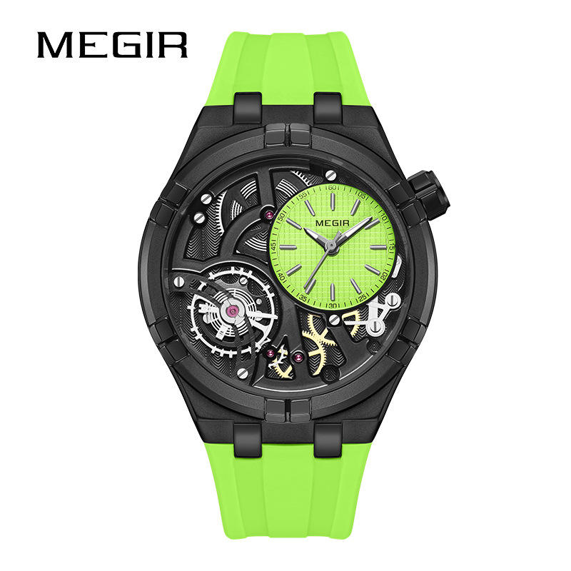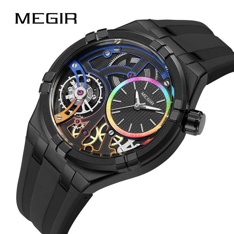 Megir นาฬิกาแฟชั่นสายซิลิโคนสำหรับผู้ชาย, นาฬิกาแฟชั่นหน้าปัดสุดสร้างสรรค์กันน้ำนาฬิกาควอตซ์ของผู้ชายเรืองแสง