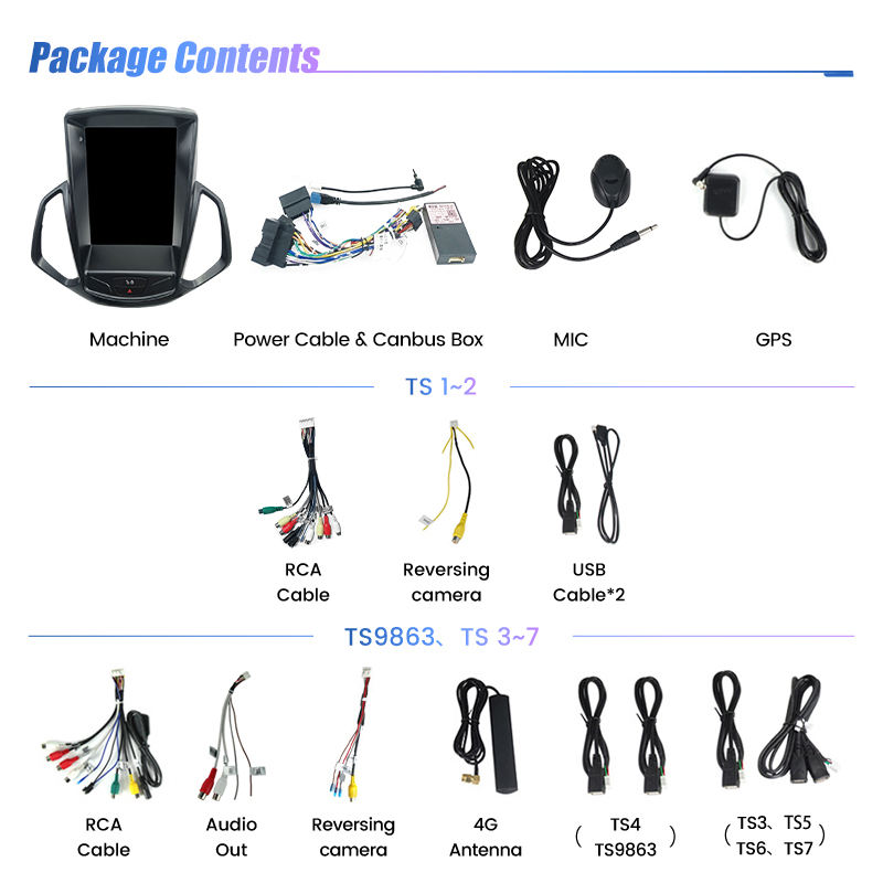 Usb, SD Card, 3G/4Gซิมการ์ด, Built-In WiFi, กล่องบรรจุภัณฑ์+คู่มือการใช้งาน, เครื่องจักร, สายไฟ, ไมค์, สายอาร์ซีเอ, กล้องถอยหลัง, ปลั๊ก USB x2, เสาอากาศจีพีเอส, เสาอากาศ Fakra 4G, เสาอากาศ GPS Fakra, บีทีสัมพันธ์