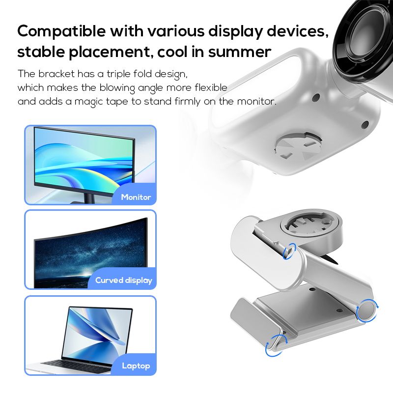 ฟังก์ชัน:พัดลมไฟฟ้า USB แบบชาร์จไฟได้สำหรับจอคอมพิวเตอร์