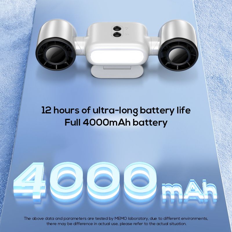 พัดลมมือถือแบบหนีบ MEMO G12 ชาร์จซ้ำได้ ความจุแบตเตอรี่ 4000mAh หมุนได้ พร้อมไฟ LED ใช้ได้กับรถเข็นเด็ก จักรยาน และตั้งแคมป์