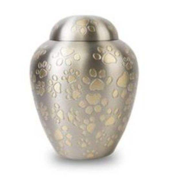 โรงงานผลิตและจำหน่ายโกศใส่เถ้ากระดูกสัตว์เลี้ยง โกศเผาศพสัตว์เลี้ยง ดีไซน์ใหม่ล่าสุด โกศโลหะสำหรับสัตว์เลี้ยง พร้อมลายอุ้งเท้า สำหรับงานศพ