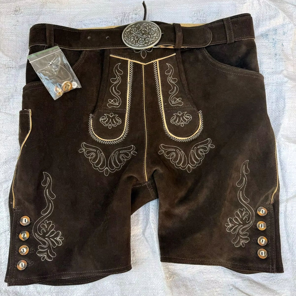 กางเกงหนังแท้สไตล์บาวาเรียนโบราณสำหรับผู้ชาย กางเกงหนังสั้นสำหรับเทศกาล Oktoberfest
