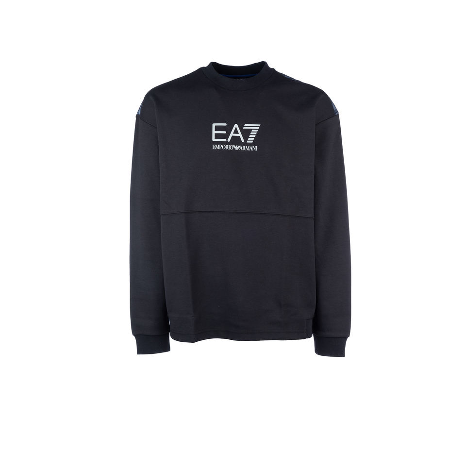 เสื้อสเวตเตอร์สำหรับผู้ชายผ้า60% recycledpolyester, ผ้าฝ้าย40% EA7 60% recycledpolyester, ผ้าฝ้าย40% สีดำ
