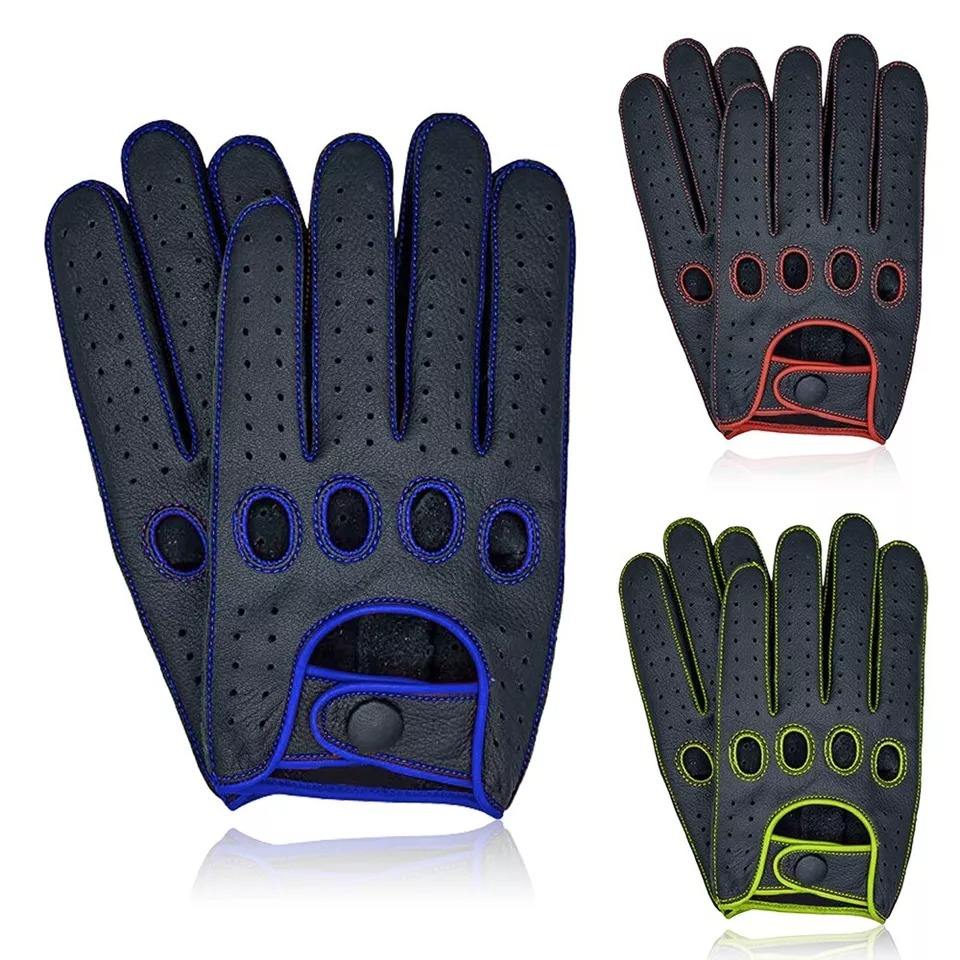 ถุงมือขับรถแบบคลาสสิกสำหรับผู้ชายถุงมือหนังแพะแท้สีดำสีน้ำตาล