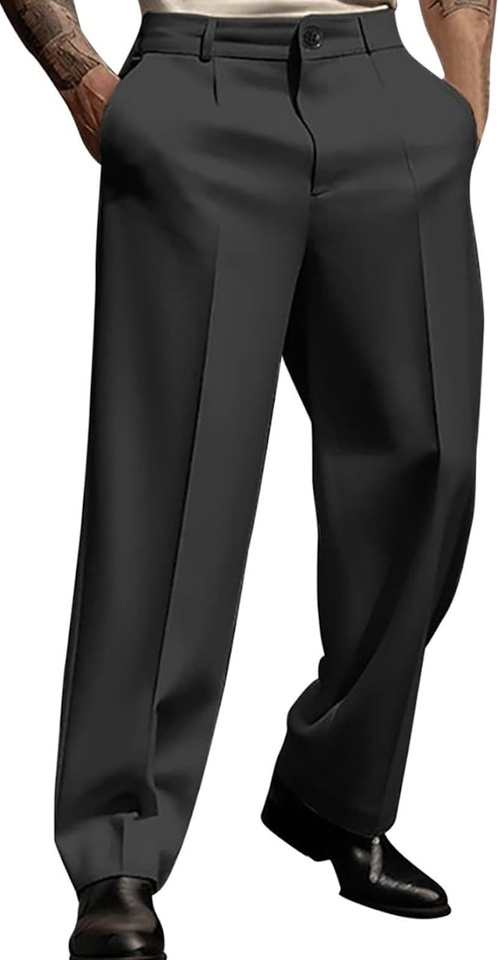กางเกงขายาวลำลองสไตล์วินเทจทรงหลวมขาบานจีบสำหรับผู้ชาย