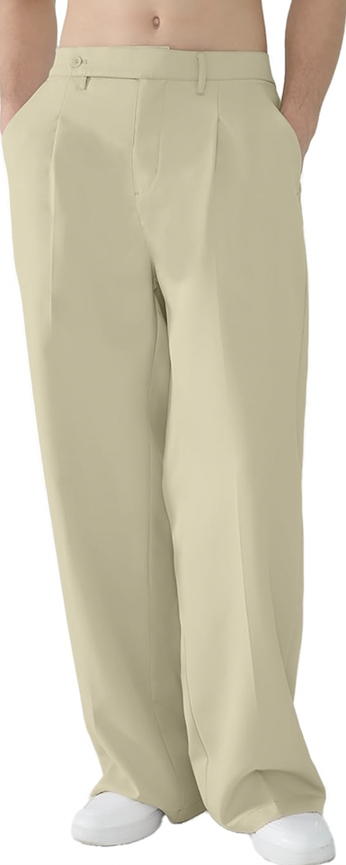 MENS OLD MONEY RELAXED FIT PLEATED WIDE LEG CASUAL WORK TROUSERS