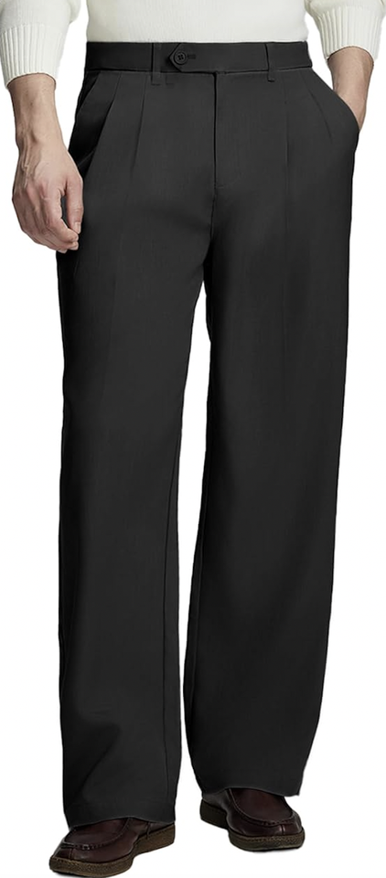 กางเกงขายาวทรงหลวมสไตล์วินเทจสำหรับผู้ชาย แบบลำลอง จีบพลีท ขากว้าง