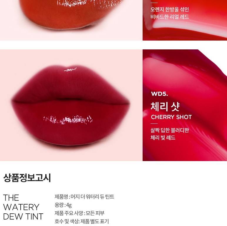 เมอร์ซี่ วอเทอร์รี่ ดิว ลิควิด ลิป ทินท์ WD5 เชอร์รี่ ช็อต 4 มล. บิวตี้ วอเทอร์รี่ ดิว เท็กซ์เจอร์ ติดทนนาน ให้ลุคธรรมชาติ ปรับแต่งได้