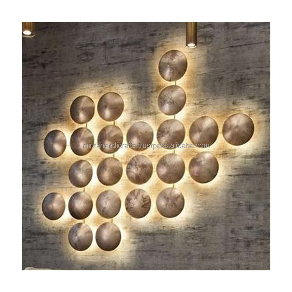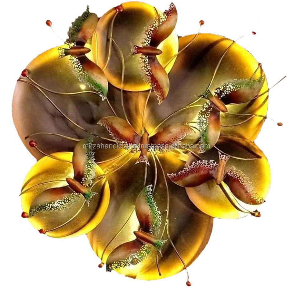 โลหะ3D ดอกไม้สีทองสีน้ำตาลพร้อมไฟ LED ด้านหลังติดผนังและแขวนตกแต่งศิลปะ