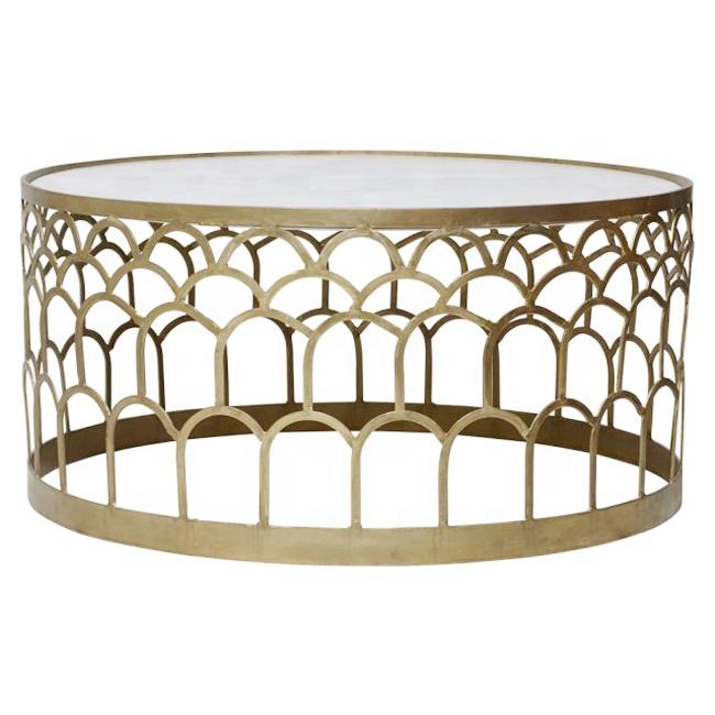 โต๊ะกาแฟโลหะพร้อมกระจกด้านบนสำหรับห้องนั่งเล่นโต๊ะกลางที่ทันสมัย