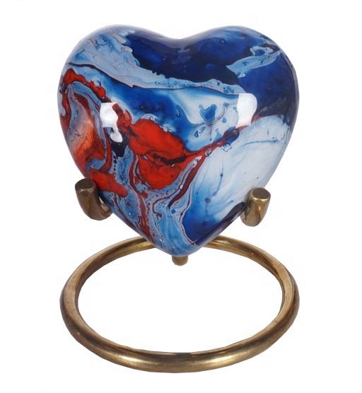 ของที่ระลึกหัวใจโลหะโกศสำหรับขี้เถ้าขี้เถ้าของนักออกแบบหัวใจหินอ่อนสีฟ้า