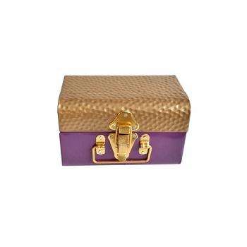 กล่องโลหะสีทองและสีม่วงสำหรับตกแต่งงานแต่งงาน กล่องเก็บของทรงสี่เหลี่ยมผืนผ้าลายตอก กล่องของขวัญโลหะตกแต่ง