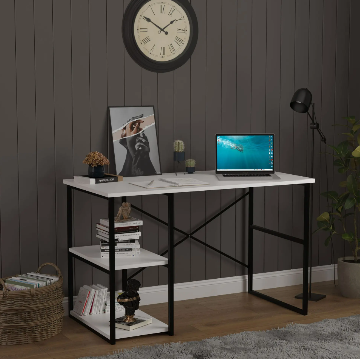 โต๊ะทำงานอุตสาหกรรม METALM01 ขนาด 120 ซม. โครงเหล็ก พร้อมชั้นวางด้านข้าง