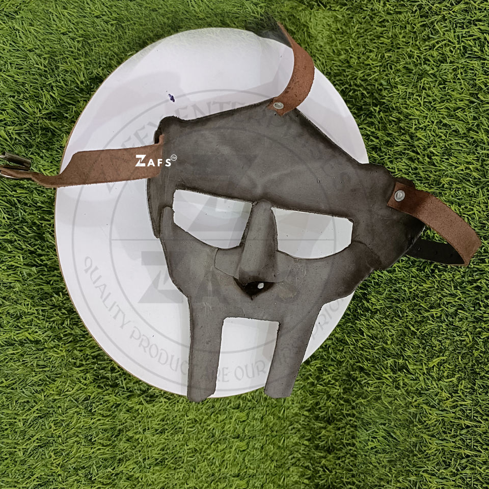 หน้ากากเหล็กอ่อน MF หน้ากากวายร้ายสไตล์โบราณเกราะโลหะหลอมด้วยมือชุบยุคกลางสำหรับงานปาร์ตี้