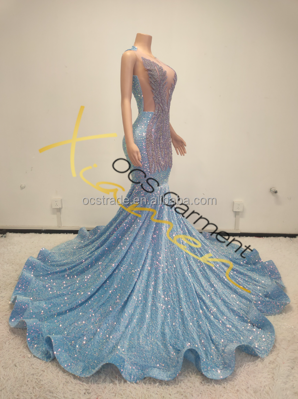 ชุดเดรสงานเลี้ยงตอนเย็นของผู้หญิงประดับพลอยเทียมสีม่วงชุดเดรสแฟชั่นสำหรับ2025