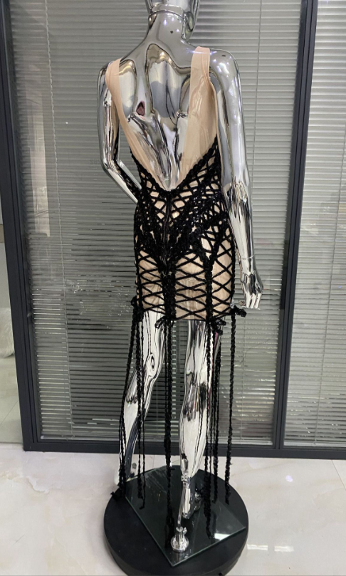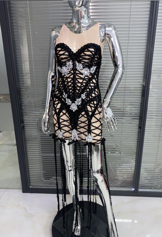 MF Para Mujeres Dress Party Tassel Crystal Patchwork Transparent Night Club Dresses Sexy for Women