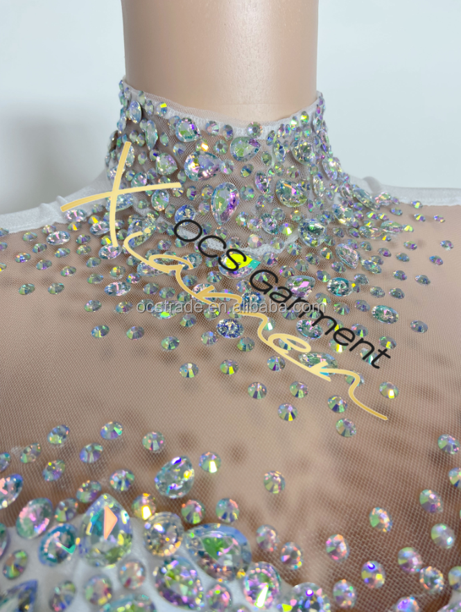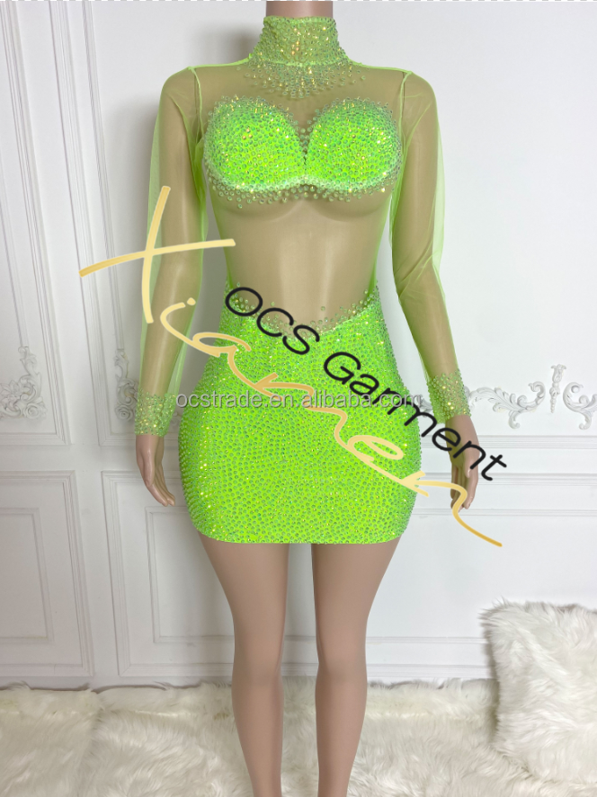 MF ชุดเดรสสั้นคอสูงประดับพลอยเทียมสำหรับผู้หญิงชุดเดรสสั้นแขนยาวเซ็กซี่หรูหราสำหรับงานปาร์ตี้กลางคืนคลับฤดูร้อน