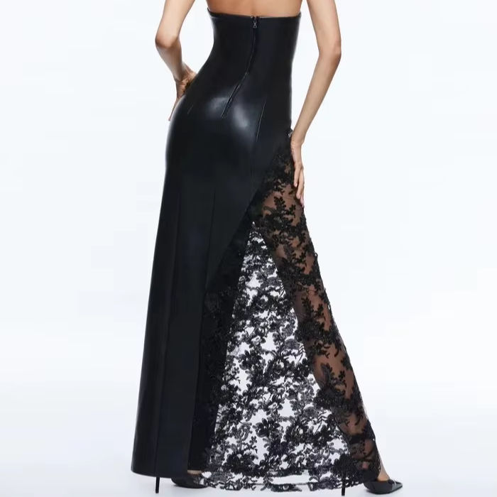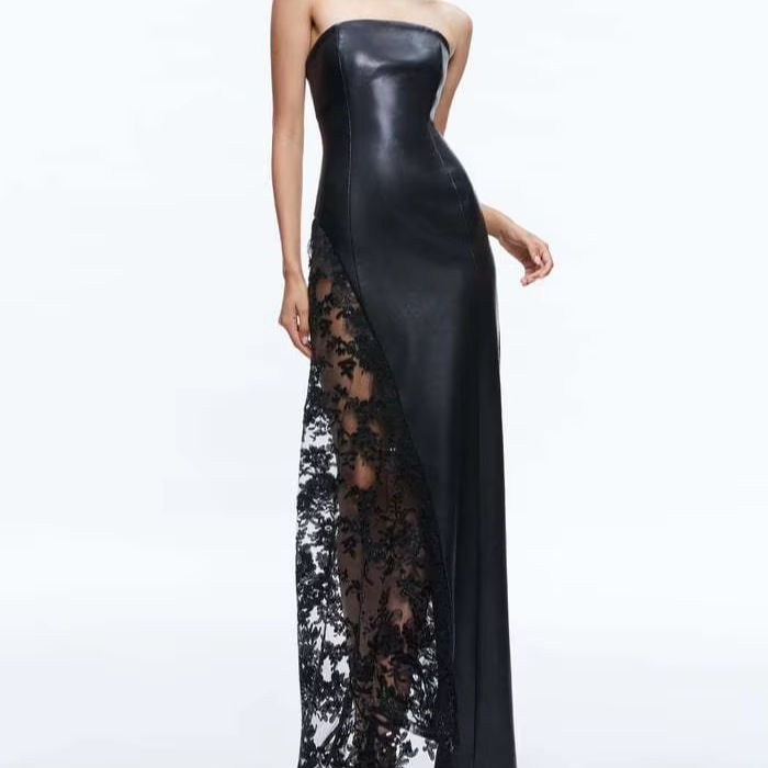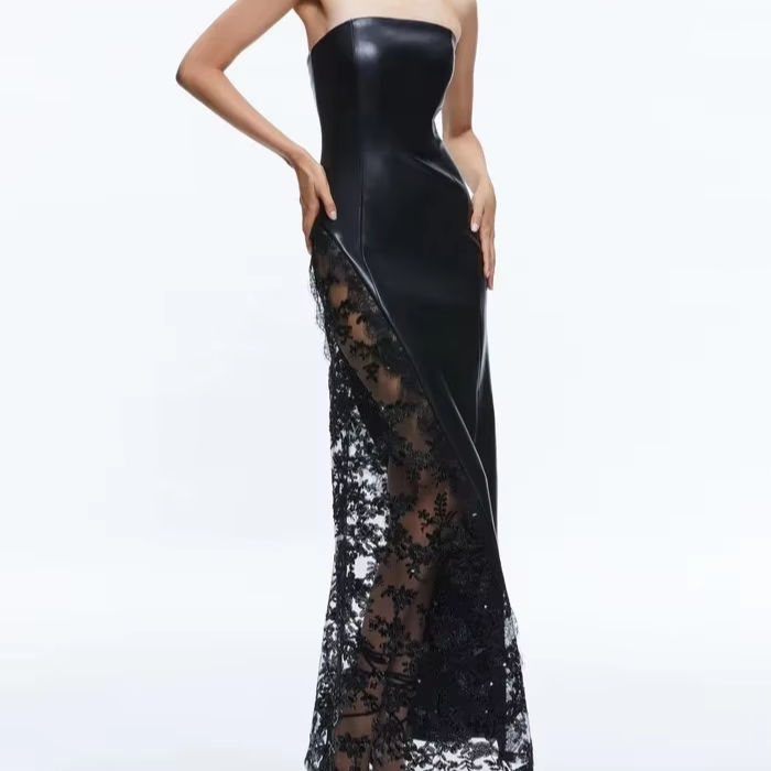 ชุดราตรีผู้หญิงแบบใหม่ของ MF เซ็กซี่ ไร้แขน ผ้าสแปนเด็กซ์ ไหล่เดียว เอวทรงเอ็มไพร์ ชายกระโปรงยาวถึงพื้น ผ้าลูกไม้ เปิดหลัง สีพื้น สำหรับงานปาร์ตี้