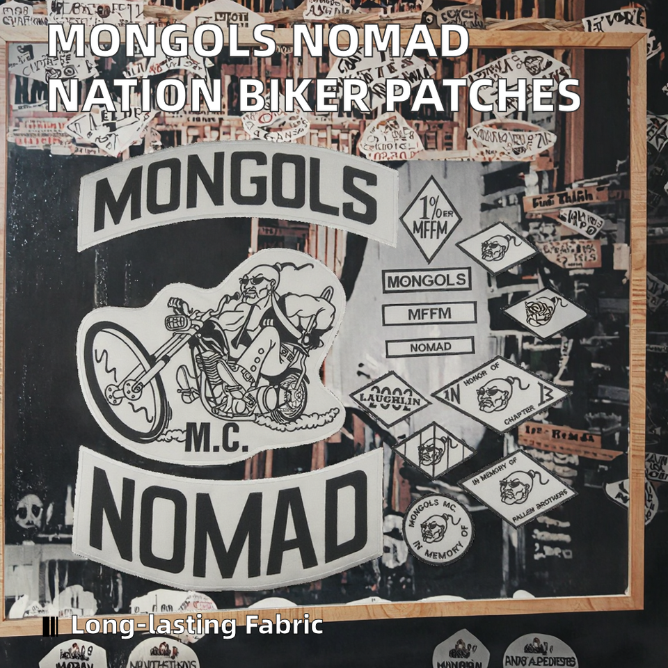 แพทช์ปักลาย MFFM สำหรับเสื้อผ้ามอเตอร์ไซค์ แจ็คเก็ตไบค์เกอร์ ผ้าเดนิม ลายปักติดด้วยความร้อน หมวก Mongols Nomad Nation