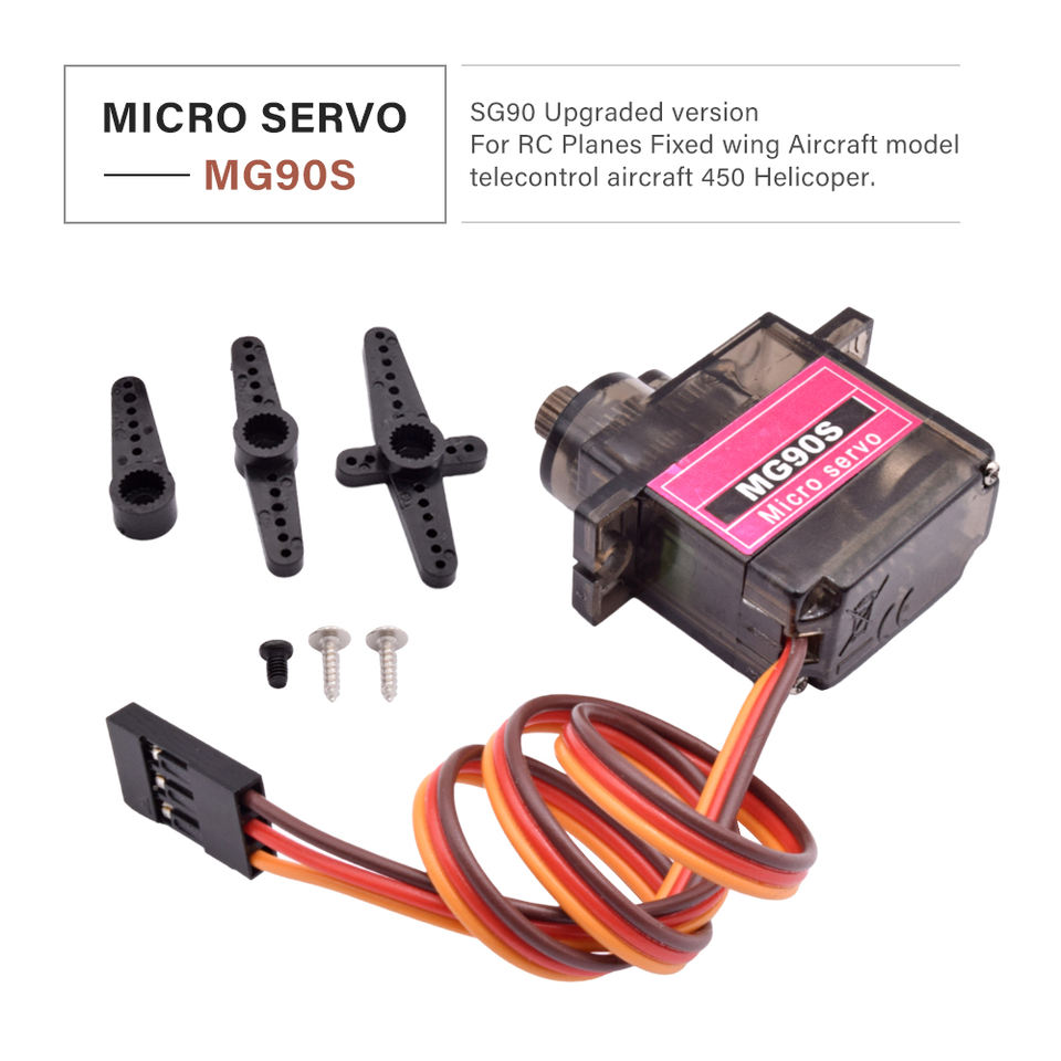 เซอร์โวมอเตอร์ MG90S เกียร์โลหะ สำหรับบังคับเลี้ยว มอเตอร์เซอร์โว MG90 180 360 องศา สำหรับเครื่องบินบังคับวิทยุ ปีกตรึง รุ่น MG90s