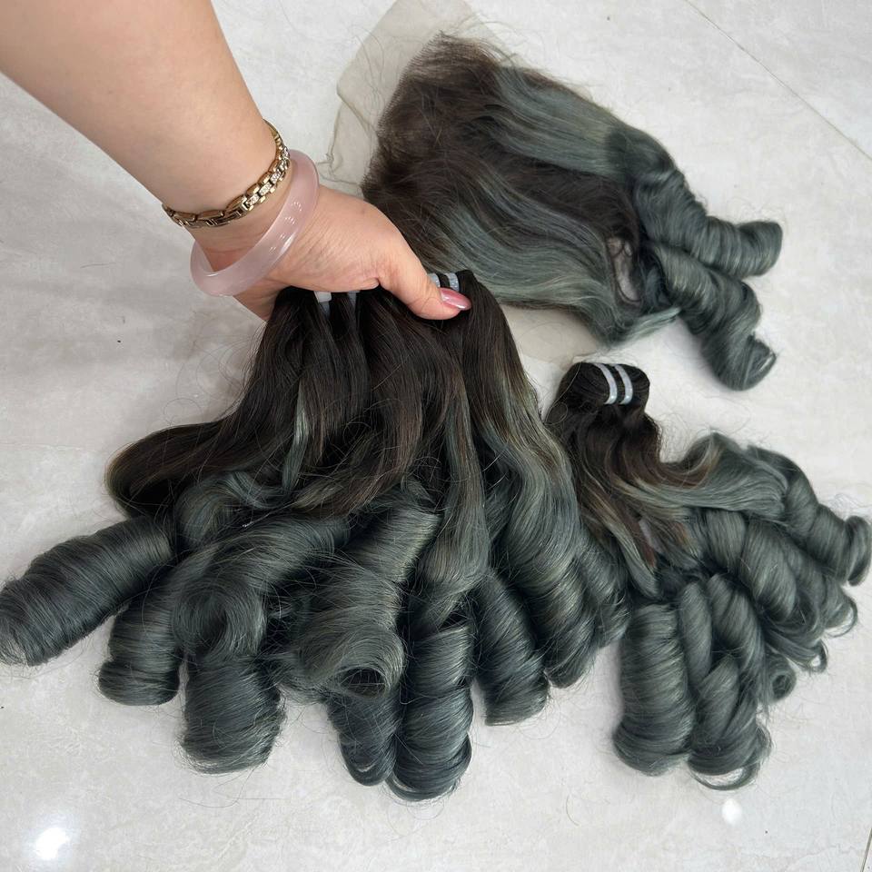 MIC HAIR SILVER GREY for SUPER DOUBLE DRAWN FUNMI BOUNCY CURLS CUTICLE ALIGNED MACHINE DOUBLE WEFT HUMAN HAIR EXTENSIONS