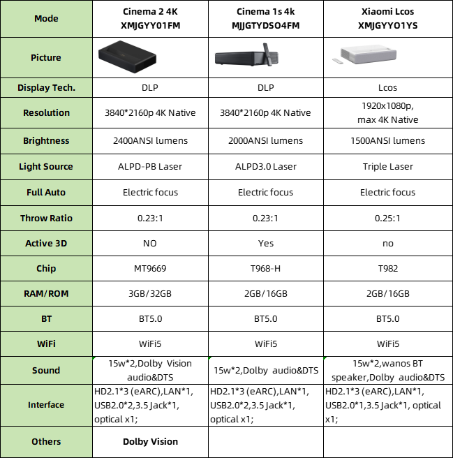 โปรเจคเตอร์ MIJIA Cinema 2 4K ขาย, โปรเจคเตอร์ Mijia Xiomi สำหรับโทรศัพท์มือถือ ความละเอียด 3840x2160p 3D DLP โฮมเธียเตอร์ เลเซอร์ บีมเมอร์ โปรเจคเตอร์