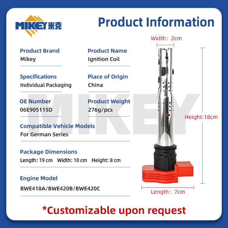คอยล์จุดระเบิด MIKEY 06E905115D สำหรับรถยนต์เยอรมัน Borgward BX5 BX6 BX7TS Porsche Panamera SE-Hybrid Cayenne SE-Hybrid สำหรับ UF529