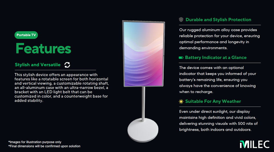 Milec ขาตั้งทีวี LCD แบบพกพาอัจฉริยะ32นิ้วหมุนได้และชาร์จใหม่ได้พร้อมตัวเลือกติดตั้งบนพื้น