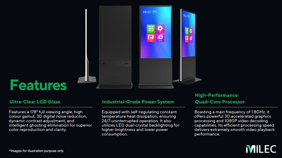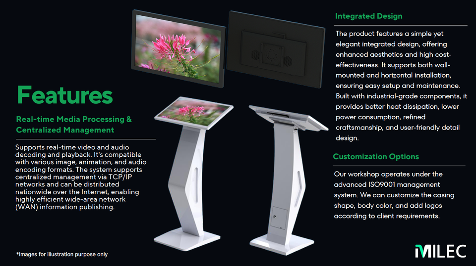 Milec ป้ายดิจิตอลติดผนังจอแอลซีดีเชิงพาณิชย์ตู้ติดผนังตั้งพื้นพร้อมอินฟราเรด/หน้าจอสัมผัสแบบ capacitive รับประกัน1ปี