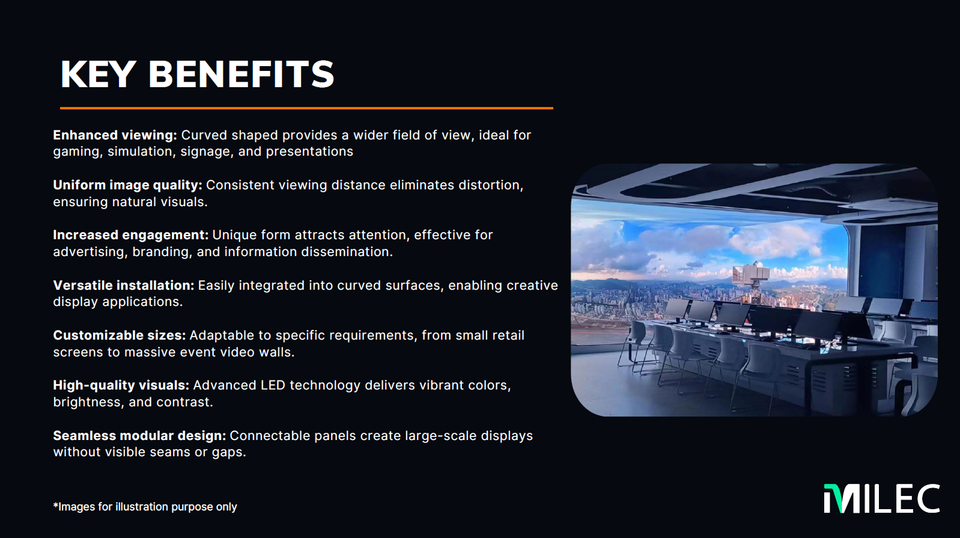 Milec จอแสดงผลโค้งงอ P1.25-P4 8K คุณภาพสูงรับประกัน5ปี CMS ในตัวสำหรับรถไฟใต้ดินห้างสรรพสินค้า