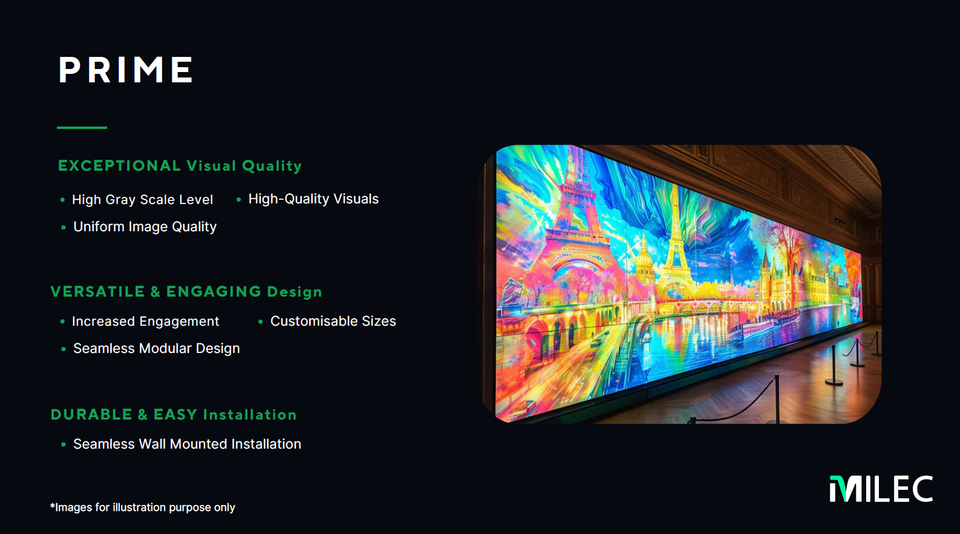 Milec PRIME cob เทคโนโลยีจอแสดงผล LED ในร่มความละเอียดสูงสำหรับที่พักอาศัยเชิงพาณิชย์