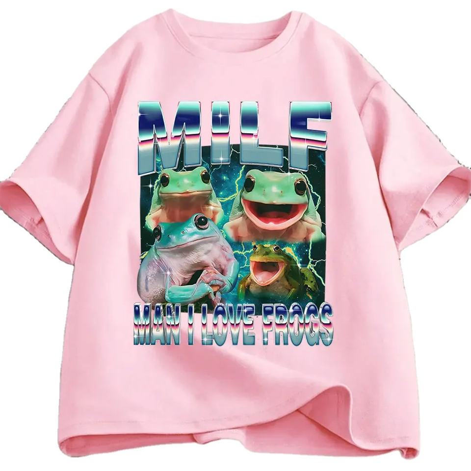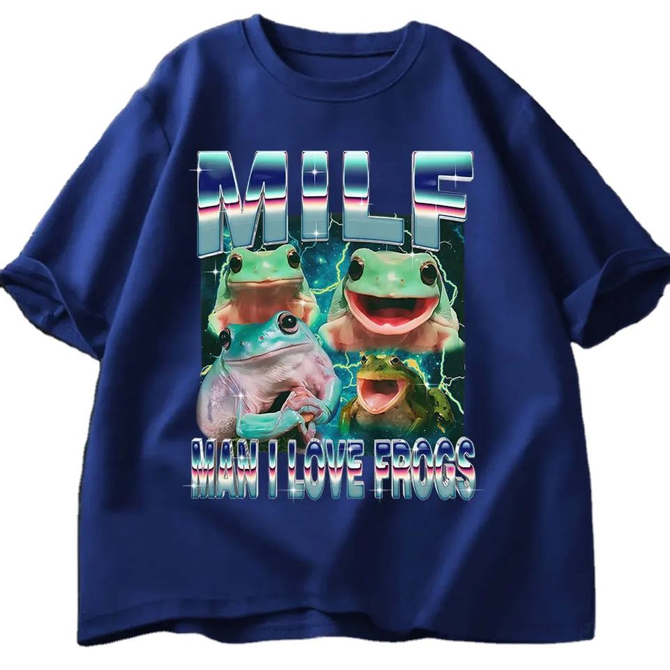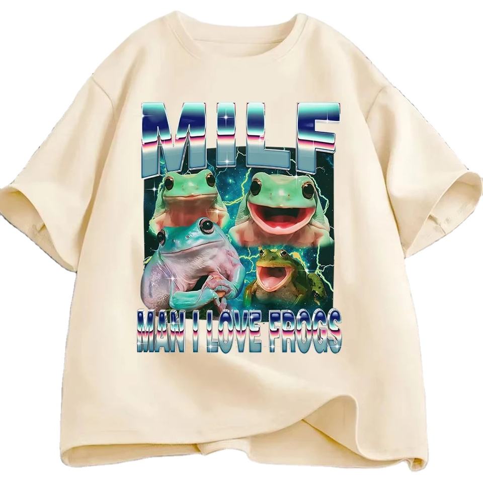 MILF Man I Love Frogs Funny Frog Meme Graphic T Shirt Fashion Vintage T-shirts Men Women Cotton Oversized Breathable Top