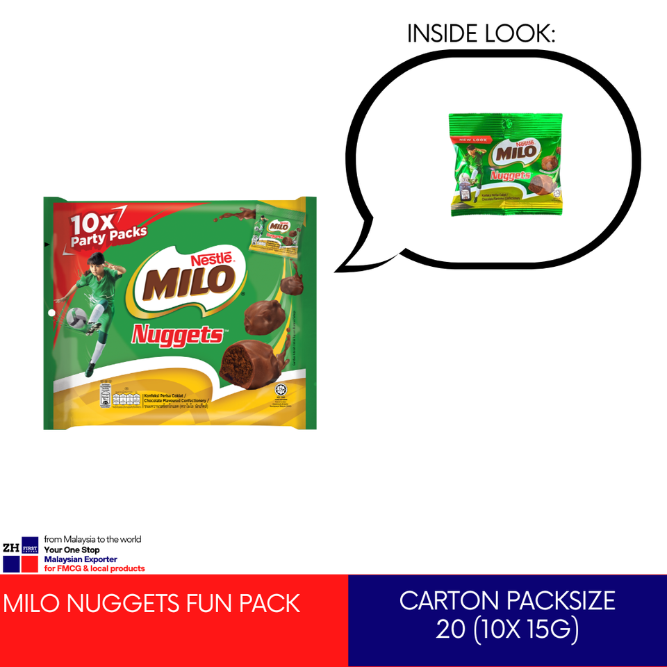 MILOo Nuggets Fun Party Pack 20x10x 15g chocolate cubes party snack halal Nestlee Malaysia mix container cheapest free sticker