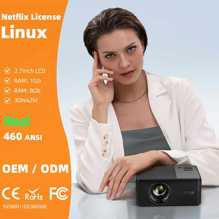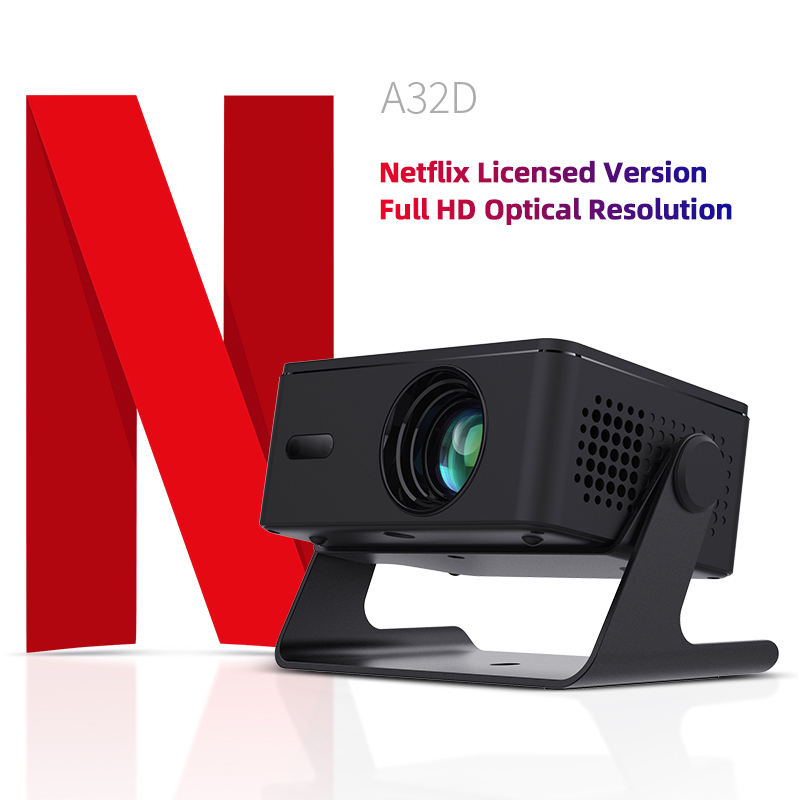 โปรเจคเตอร์พกพาขนาดเล็ก ระบบ Linux รองรับความละเอียด 4K 1080P Full HD Netflix 3D ฉายภาพระยะใกล้ พร้อม WIFI ลำโพง HIFI เหมาะสำหรับห้องนอน ดูฟุตบอล สมาร์ททีวี มาตรฐาน CE ROHS รุ่น A32D